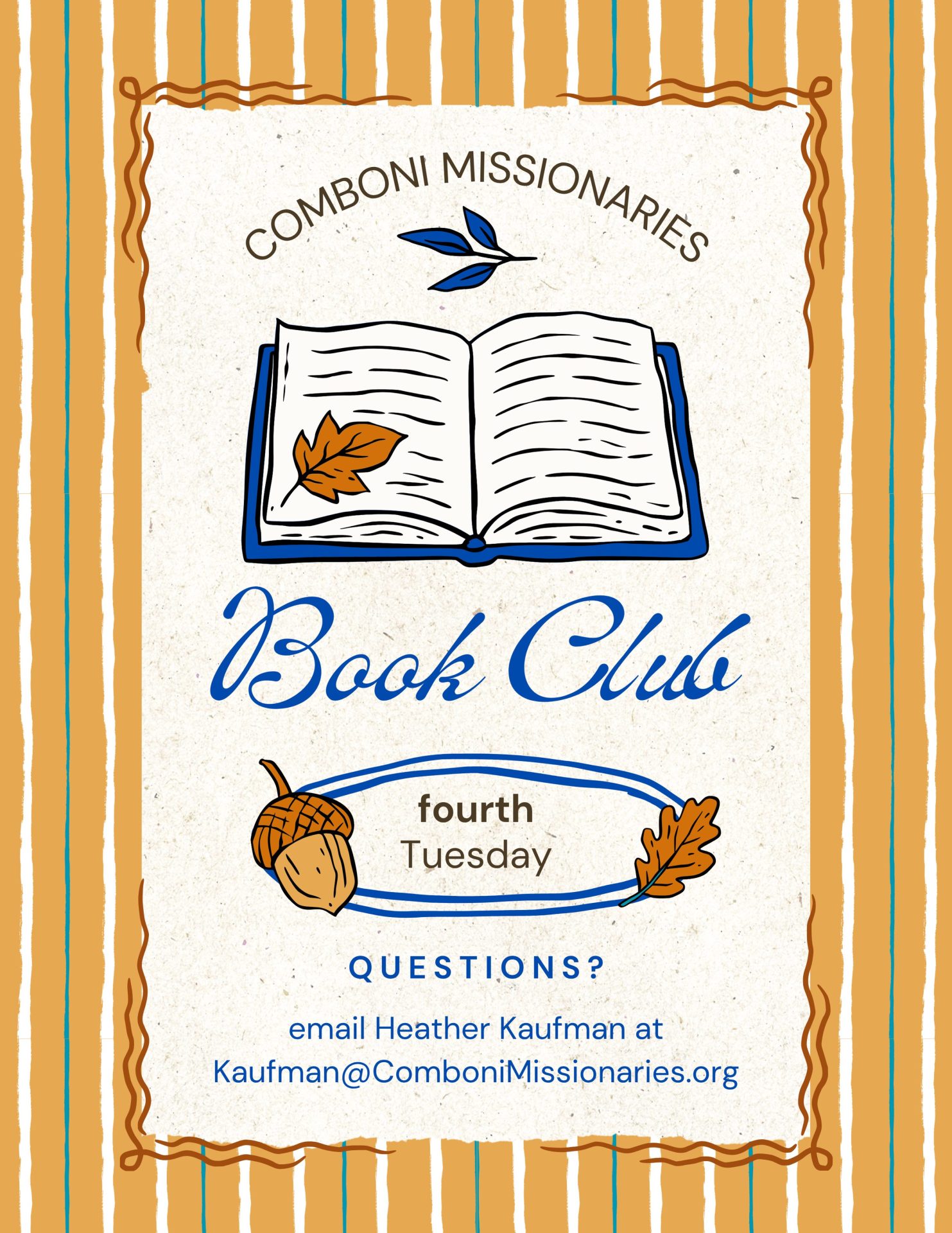 The Comboni Book Clubs meets the fourth Tuesday of every month at 7 p.m. (EST).